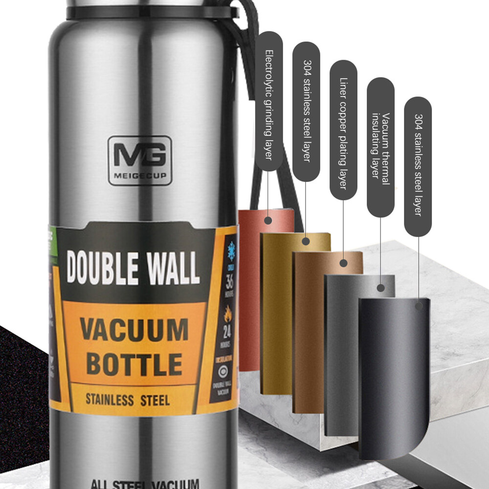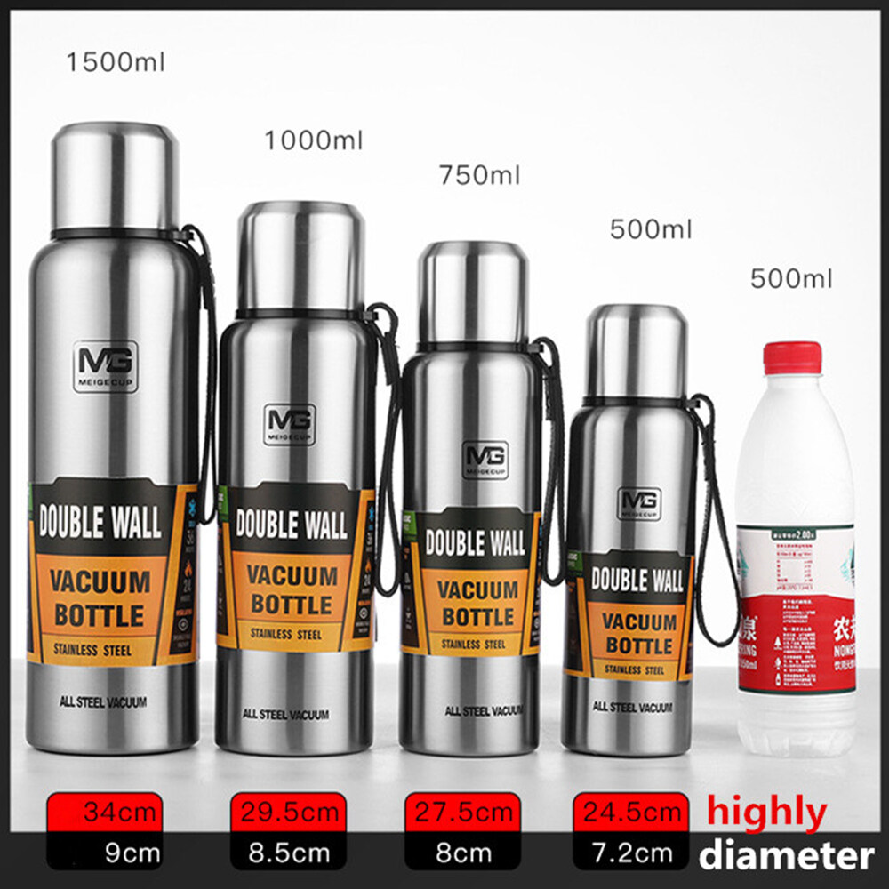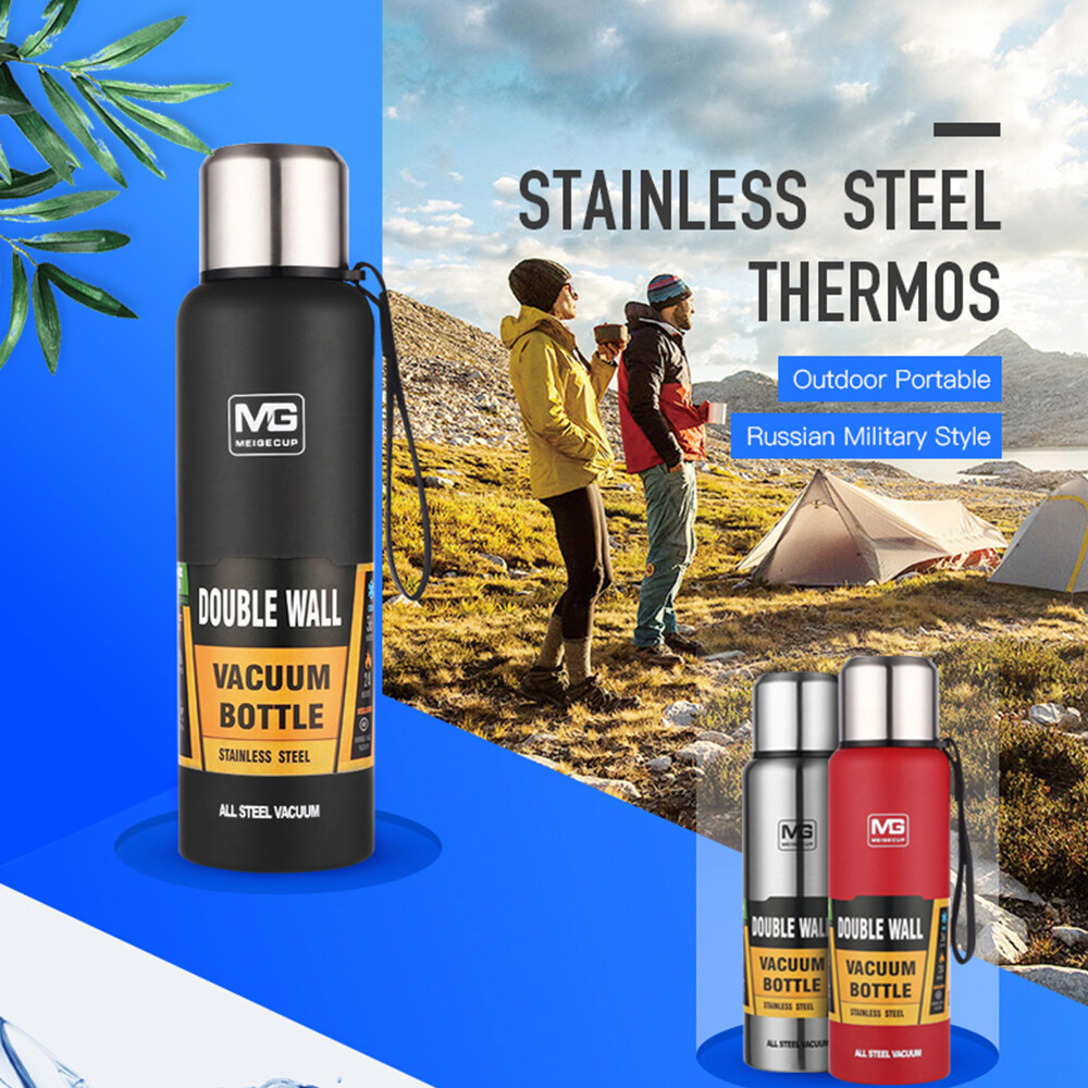 500/750/1000/1500ml Double Wall Stainless Steel Outdoor Thermos Portable Large Capacity Insulated Cup Military Style Vacuum Flask Coffee Tea Milk Travel Mug Thermo Bottle