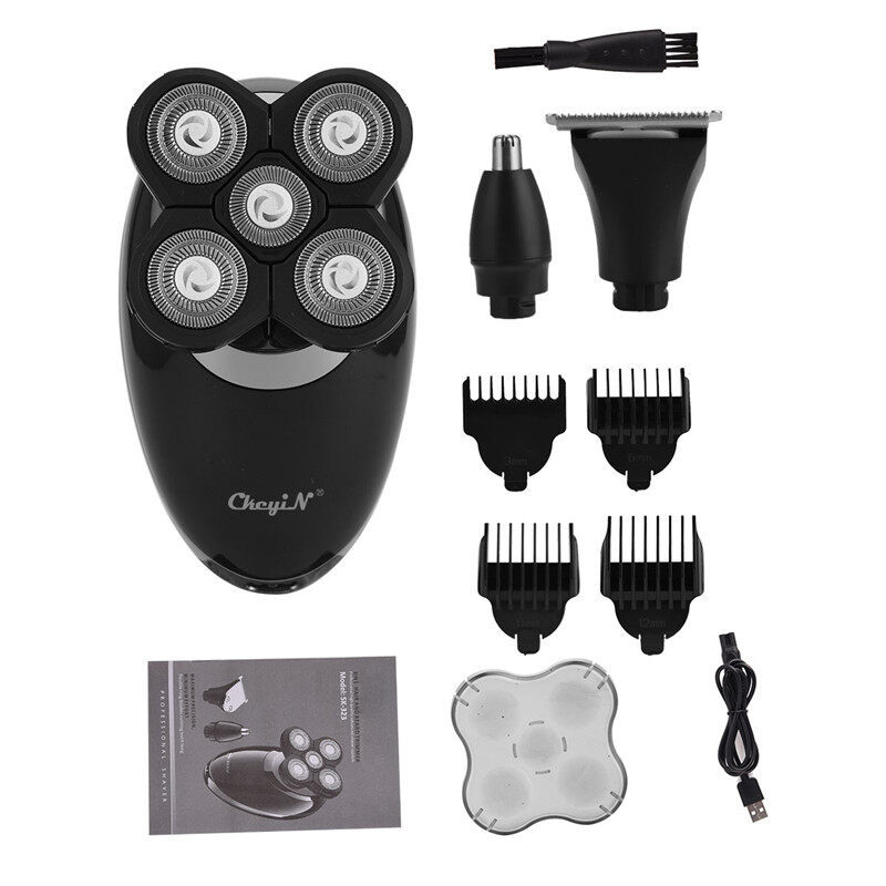 CkeyiN 3 in 1 Electric Floating Shaver Cordless Bald Head Hair Clipper Rechargeable Beard Nose Hair Trimmer Hair Clipper with 4 Limit Combs RC361