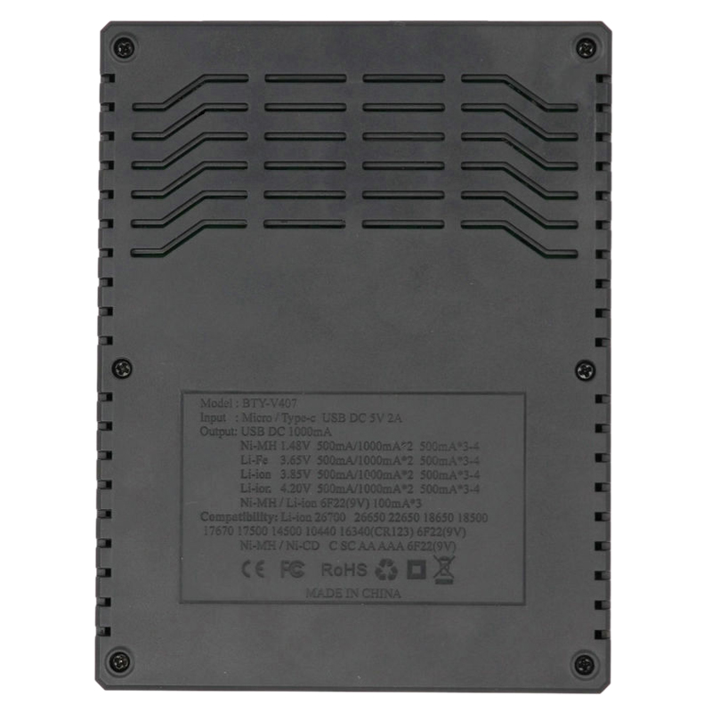 BTY-V407 Battery Charger Li-ion Li-fe Ni-MH Ni-CD Smart Fast Charger for 18650 26650 6F22 9V AA AAA 16340 14500 Battery Charger