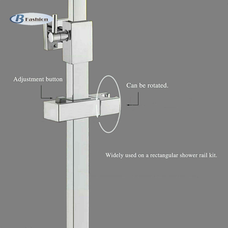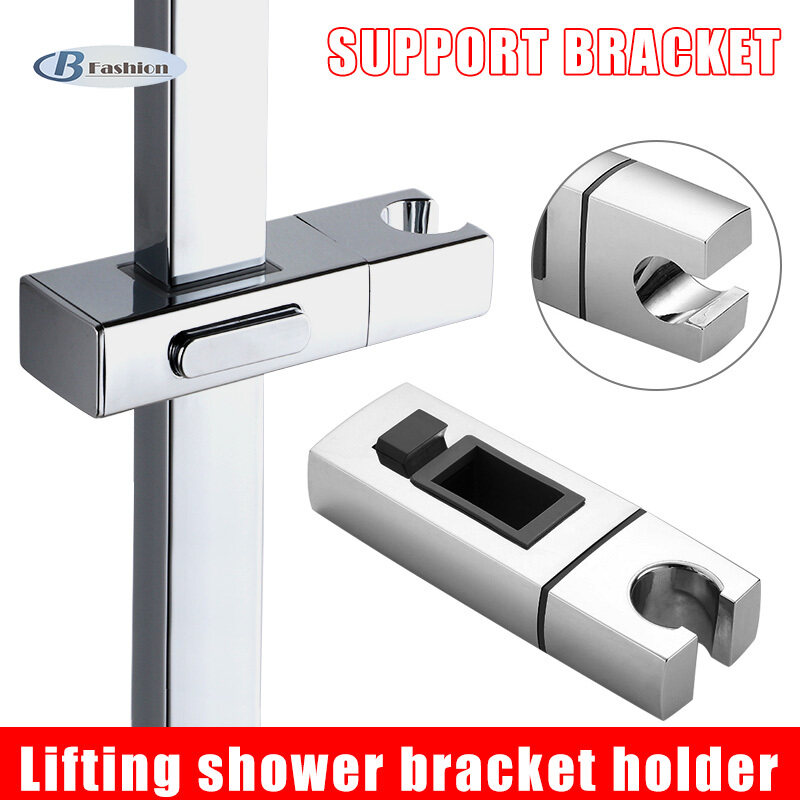 Adjustable replacement bracket holds a handheld shower head securely in place on a slide bar