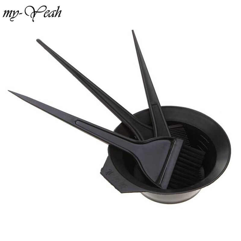 myyeah 5Pcs/set Coloring Dye Comb Mixing Bowl Brush Earmuff Set Black Plastic Hair color Barber Salon Tint Hairdressing Styling Tools