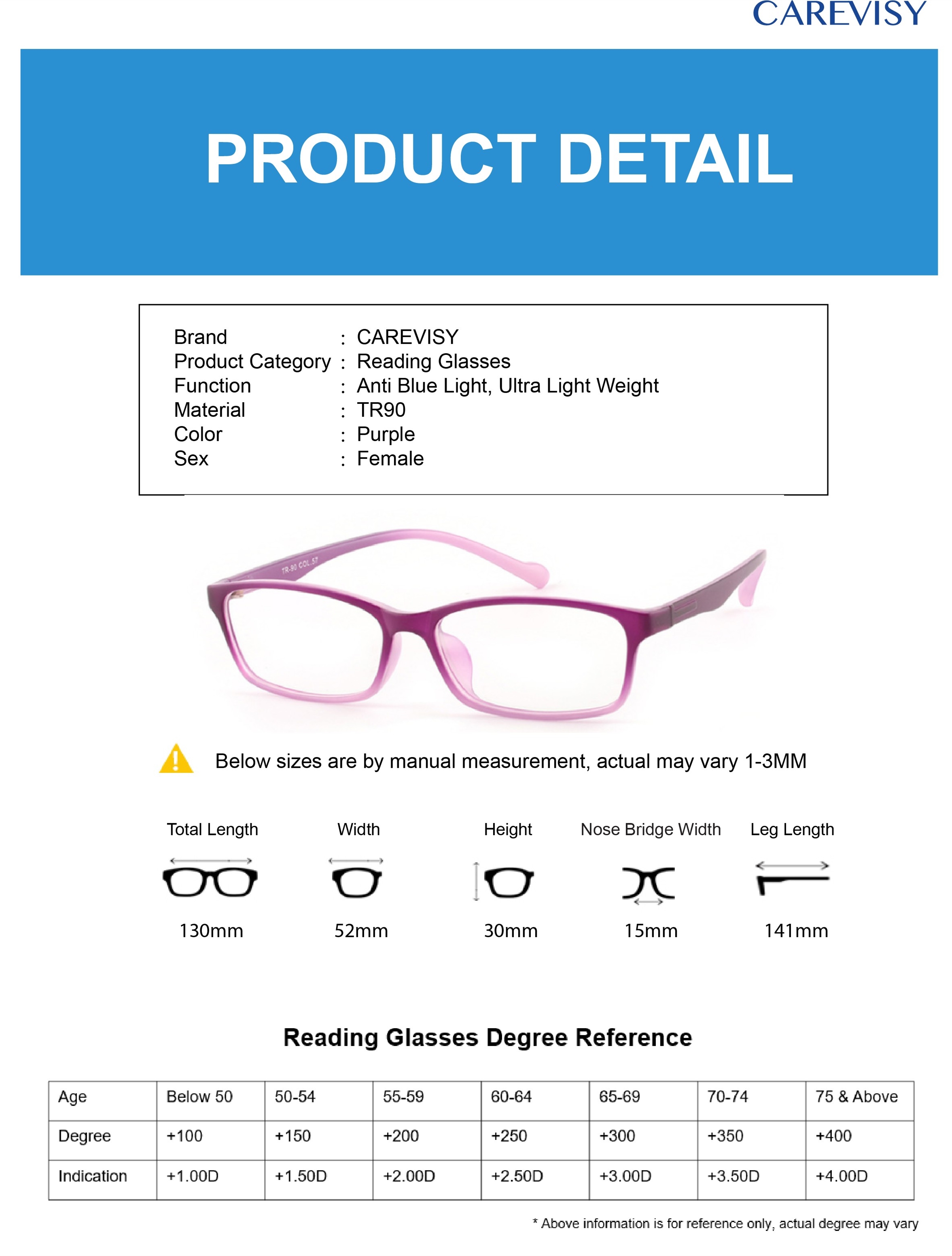 Welcome to CAREVISY, a professional Eyewear brand. We provide high quality Reading Glasses, Computer Glasses, Sunglasses and other Eyewear Accessories at affordable prices based in Singapore. Customer's satisfaction is our top priority. We valued customer's time and we will post out your order by next day. Afterwards, logistic team will pick up your parcel and delivery it to you, expected delivery time by logistic team is about 1-2 working days. Feel free to contact us if you have any queries. Care for your vision and enjoy your shopping now!