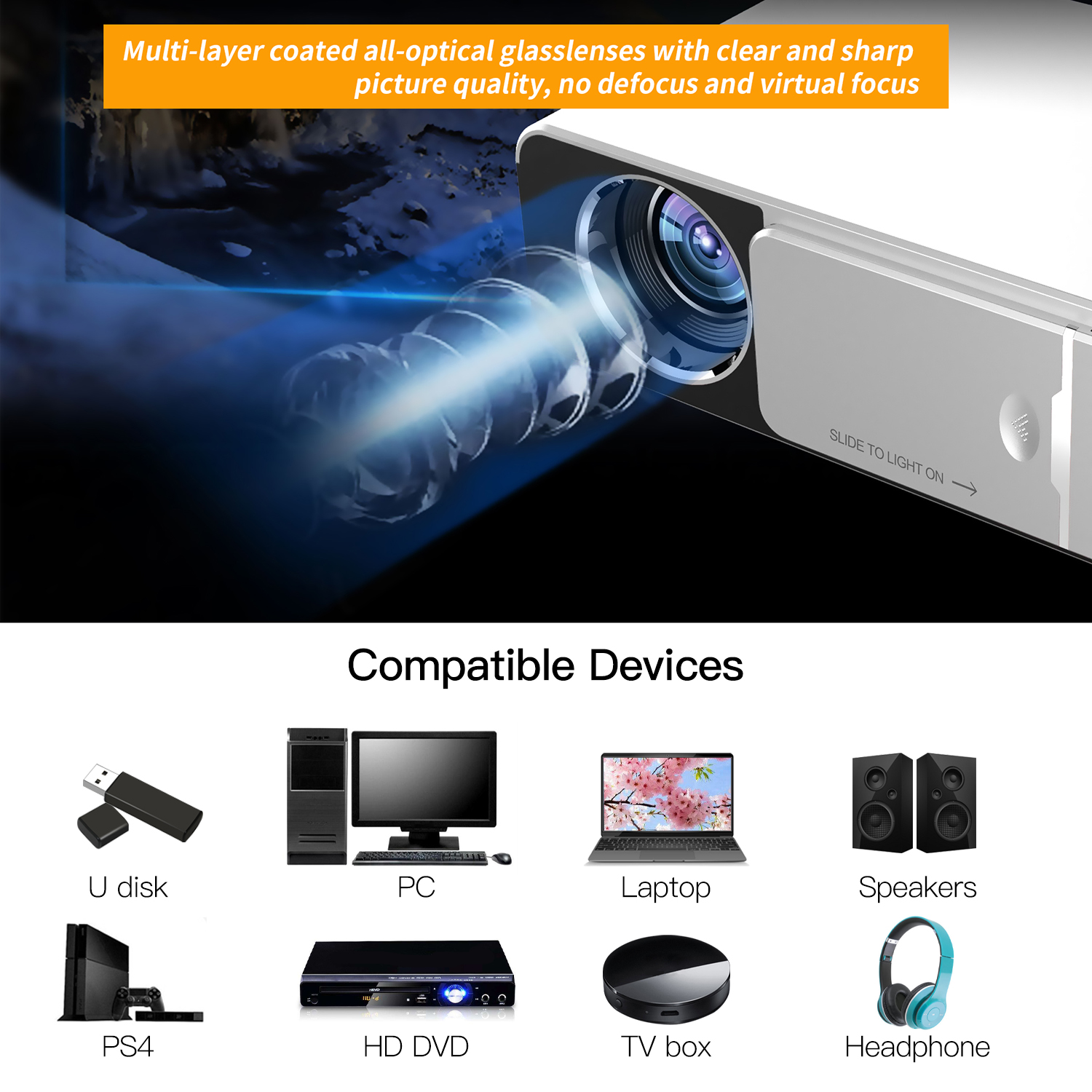 STANSIO REO5 WiFi Wireless Mirroring Airplay Phone LED Mini Projector 1080P 3000 Lumens 4K Multi-media HDMI USB LCD Projectors