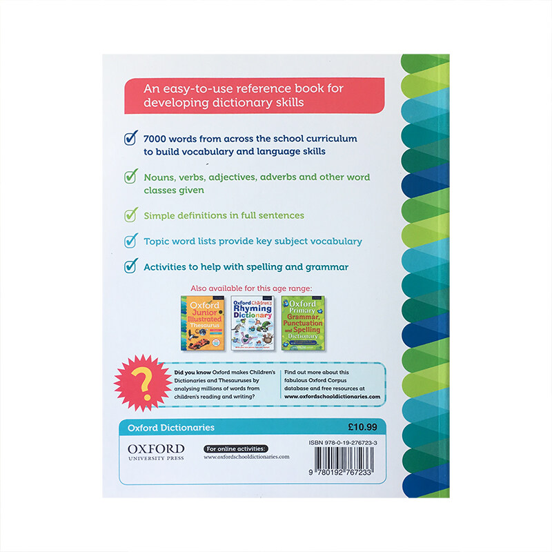 Oxford Junior Illustrated DictionaryOxford Children's English Graphic DictionaryIt Contains More than 7000 Entries and Is Equipped with Exquisite Illustrations and Photos. The Entry Is Simple and Clear, Including Interpretation, Part of Speech Description, Part of Speech Changes and Example Sentences. The Typesetting of the Book Has Been Redesigned. Each Page Has a Clear Letter Index, and the Interpretation Is Also Numbered, Which Makes It Easier for Children to Quickly Look up Words.