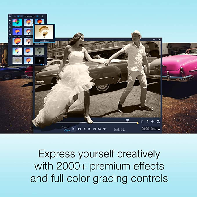 • Create impressive video productions with the ultimate set of easy-to-use tools, premium creative effects, fun titles and templates, and exclusive powerful extras